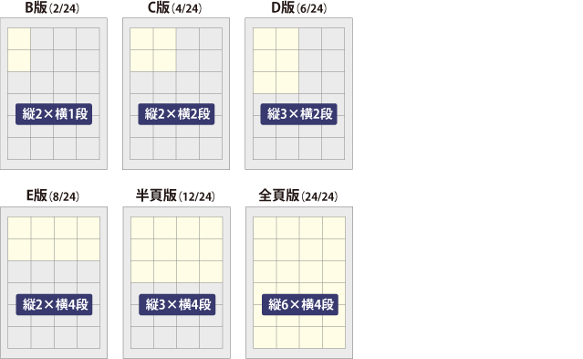 | 半頁版 | タイプF | 15枠 | 144,000円 | 36,000円 | 256,000円 | 32,000円 | 336,000円 | 28,000円 | 576,000円 | 24,000円 |